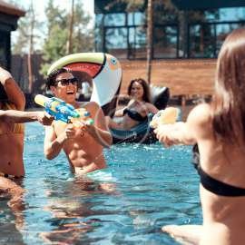 Join an amazing pool party with fireworks.